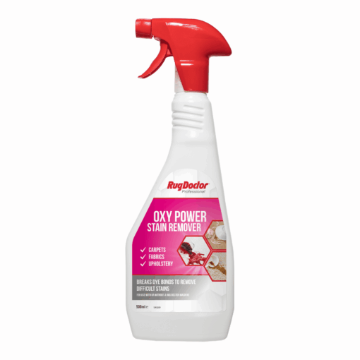 Rug Doctor Oxy Power Stain Remover: bleach-like cleaning power without the drawbacks. Its oxy-action formula targets stubborn stains, making them disappear, even red wine spills!